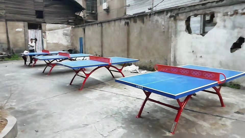 老旧城区里安装的乒乓球台